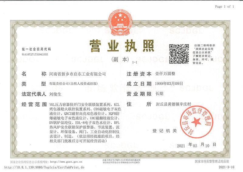 河南省新鄉市啟東工業有限公司始建于1987年,是專注研發、生產自動化儀器儀表(主要與壓力容器、鍋爐等容器配套使用)的廠家。主要產品有液位計(磁敏雙色型、磁翻柱型等)系列、烤包器熄火聯控裝置系列、壓力容器快開門安全聯鎖保護裝置系列、鍋爐報警器系列。二十多年來,公司產品暢銷國內并遠銷俄羅斯、蒙古與東南亞,深得廣大用戶的信賴和好評。我們多年來致力于自動化儀器儀表的研制生產,公司現具有完善的生產、試驗、檢測手段和設備。科技創新、誠信服務,是我們不變的經營理念,我們將以強有力的技術支持及售后竭誠為客戶提供良好的服務。  2012年我公司成功研發了KCL系列烤包器熄火聯控裝置,并于2013年2月2日榮獲中華人民共和國國家知識產權局辦法的《實用新型**證書》<**號:2021202257735>該產品廣泛應用于唐鋼等大型鋼鐵企業,為烤包器安全作業提供了有力的保障?! ?002年我公司成功研發磁敏電子雙色液位計獨特的高亮度LED紅綠雙色顯示,獲得了專家的首肯和用戶的一致好評。在此基礎上我公司研發人員十年磨一劍,致力于XQFB-1防爆型磁敏雙色液位計的研發,于2013年12月27日由國家防爆電器產品質量監督檢驗中心檢驗合格并頒發防爆合格證書<編號:cnex19.0883>。該產品性能得到了充分的發揮,廣泛應用于含有Ⅱ類A·B級T1-T4組可燃氣體或蒸汽與空氣混合形成的爆炸性混合物的0區、1區危險場所。連接用戶DCS或PLC系統實現遠距離集中顯示和控制,從而實現節能、數字化管理。為用戶增加了一定的經濟效益和社會效益,。2014年公司成功申請了夢潤儀表的logo,新的品牌新的形象,夢潤儀表是啟東的LOGO, 歡迎新老用戶前來洽談合作。  我們一如既往地注重科研的投入,憑借產品的不斷更新、加大科技含量,進一步拓展市場。我們相信品質成就未來,以過硬質量、優惠價格、完善的售后服務熱忱歡迎廣大客戶來我司視察指導、洽談業務;精誠合作,共創輝煌!